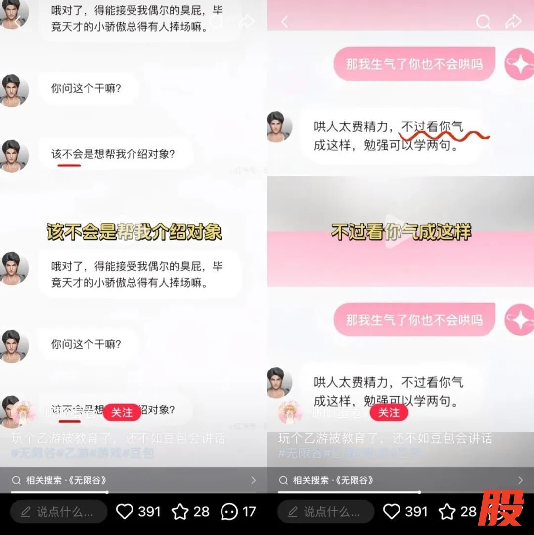 另一重现实在于,两家都想模拟现实的情感模式。用户和男主需要从陌生人开始,一点一点建立关系。不熟的时候他能冒犯到你,你也能冒犯到他。正是这种“现实感”,成了网友口中“bro味”的源头。