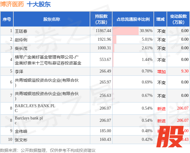 根据博济医药2025年中报公布的十大股东详情如下:
